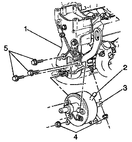 22. Remove power steering pump bracket (1).