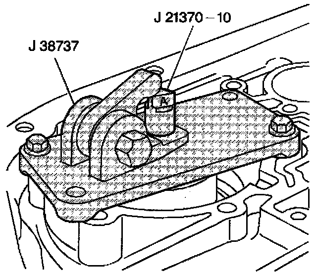 3. Fasten the J 38737 to the case with two low and reverse band servo cover bolts.