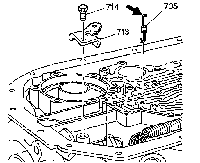 3. Remove the parking pawl actuator bracket (713) and bolts (714).