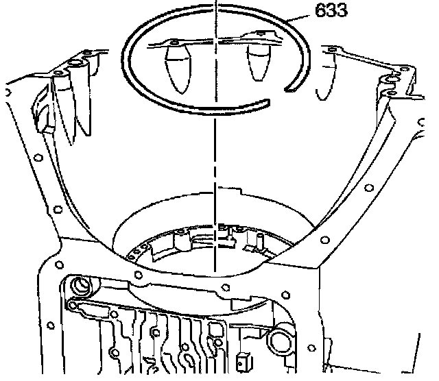 5. Remove the center support retainer ring (633).
