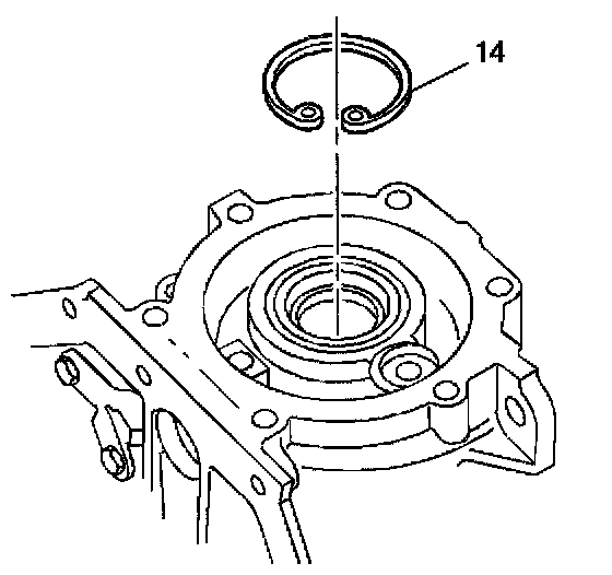 Install the output shaft seal retainer ring (14).