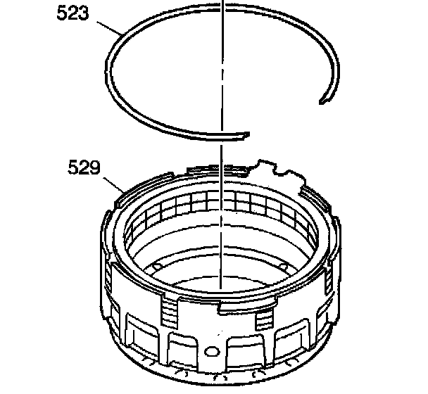 1. Remove the fourth clutch backing plate retainer ring (523).