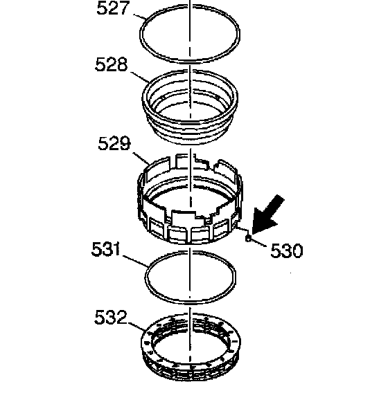 12. Inspect the fourth clutch housing orifice (530). The orifice should be open approximately 0.51 mm (0.020 inch).
