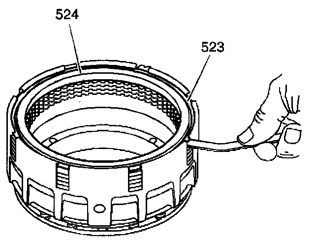 Using a feeler gage, measure between the fourth clutch backing plate (524) and the fourth clutch backing plate retainer ring (523). The measurement should be