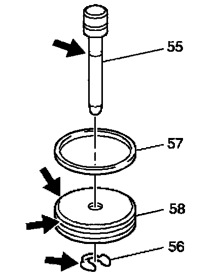4. Inspect the manual 2-1 band servo piston (58) for porosity, wear and seal ring groove damage.