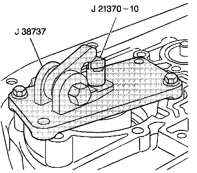 3. Fasten the J 38737 to the case with two low and reverse band servo cover bolts.