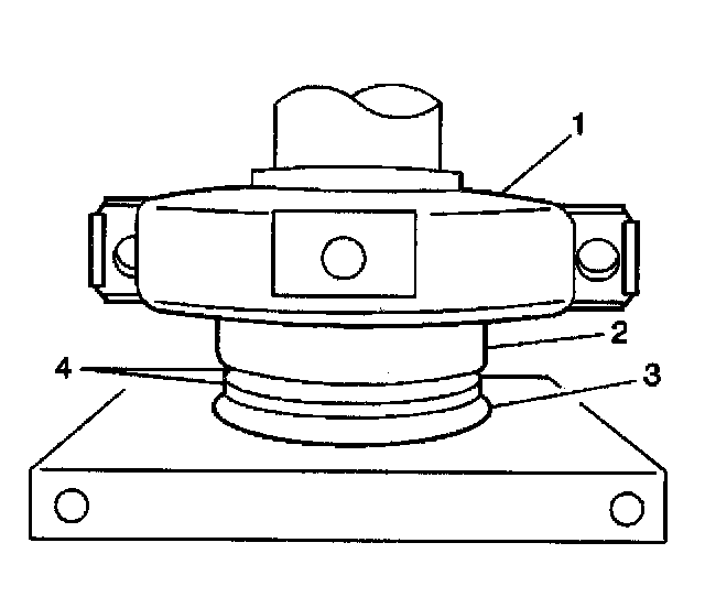 3. Place the center bearing assembly (3) on the propeller shaft with the circular can (4) towards the weld shoulder.
