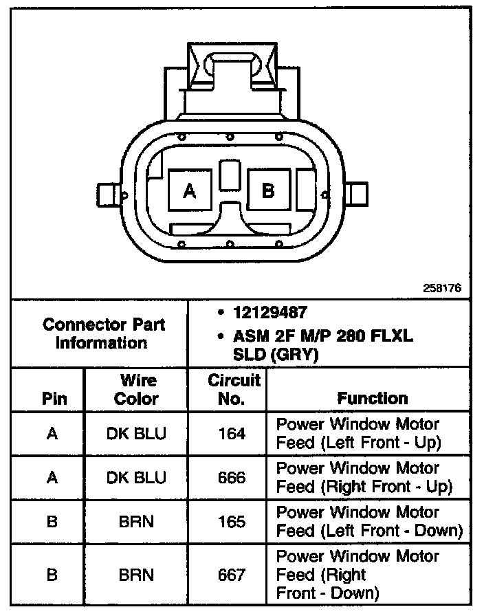 Power Window Regulator Motor Connector: