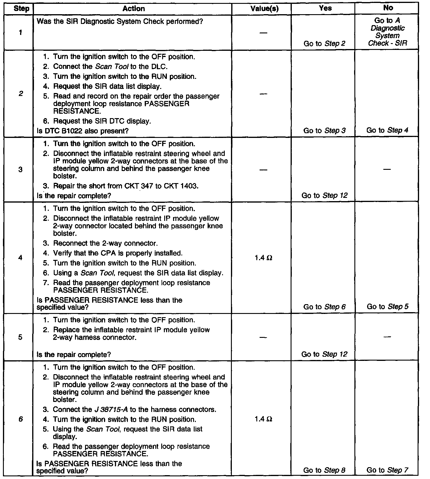 - The resistance of the passenger deployment loop is more than 1.4 ohm.