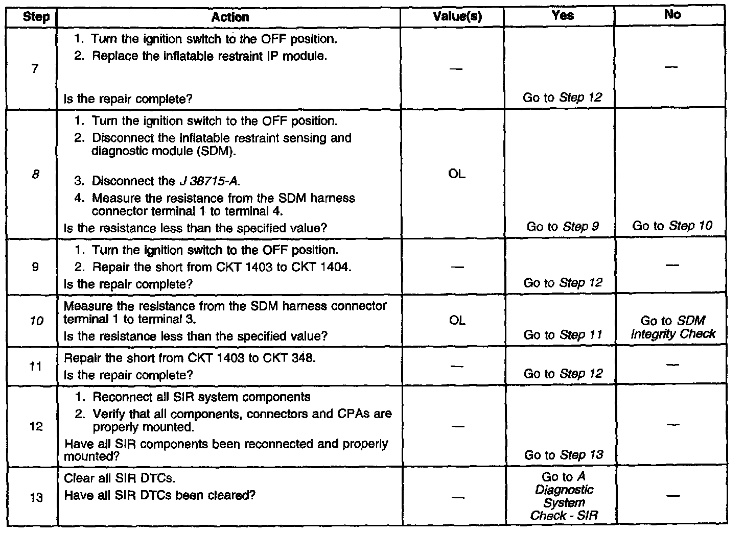 6. This test isolates the malfunction to one side of the inflatable restraint IP module yellow 2-way connector.