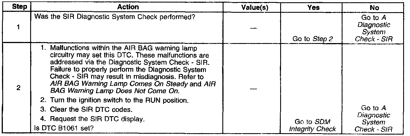 ^ Current DTC-The output state at the AIR BAG Indicator Control terminal 7 matches the commanded state of the lamp driver for 400 milliseconds.