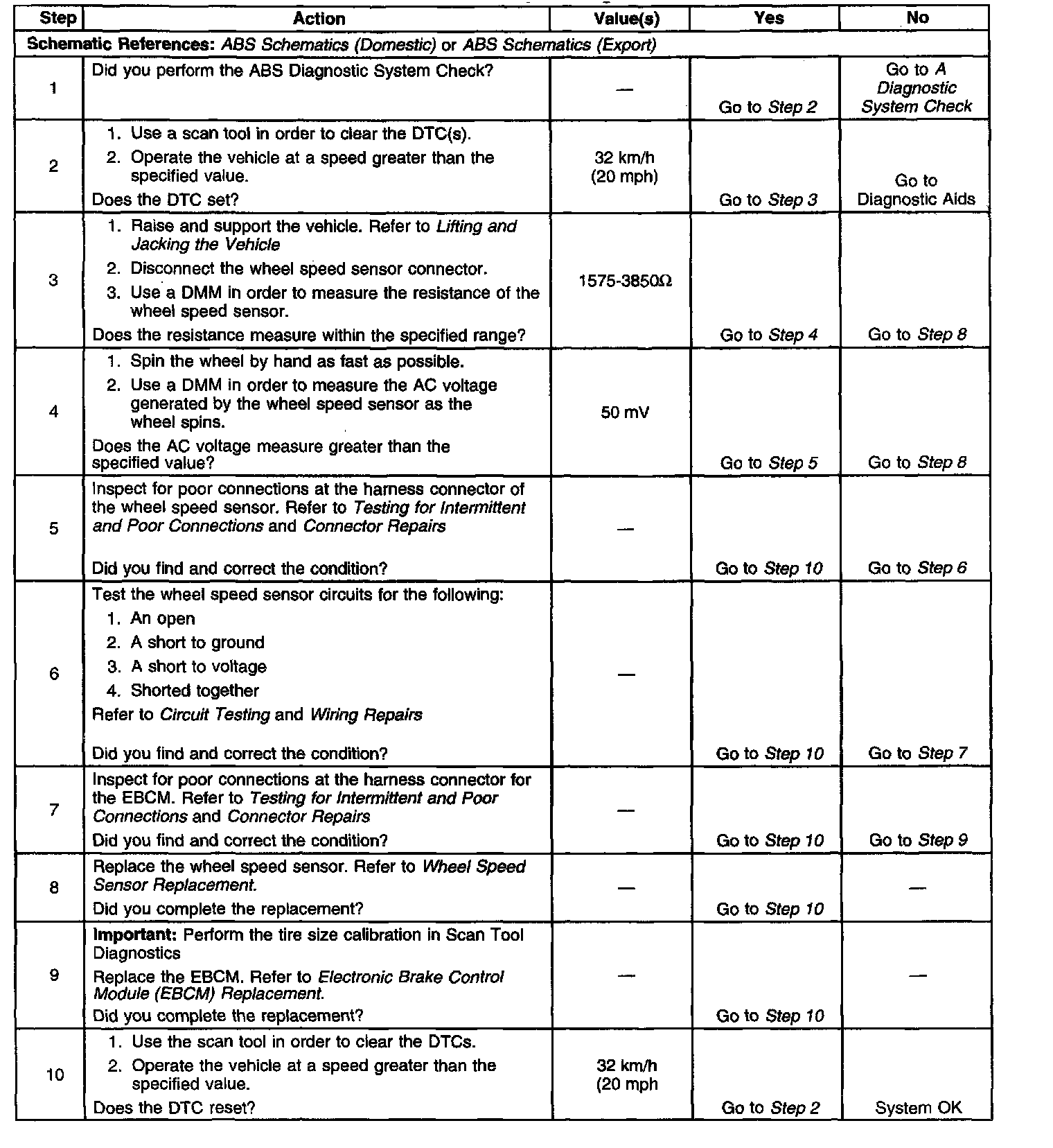 ^ All wheel speed sensor signals are greater than 32 km/h (20 mph) with brake applied or 19 km/h (12 mph) with brake released.