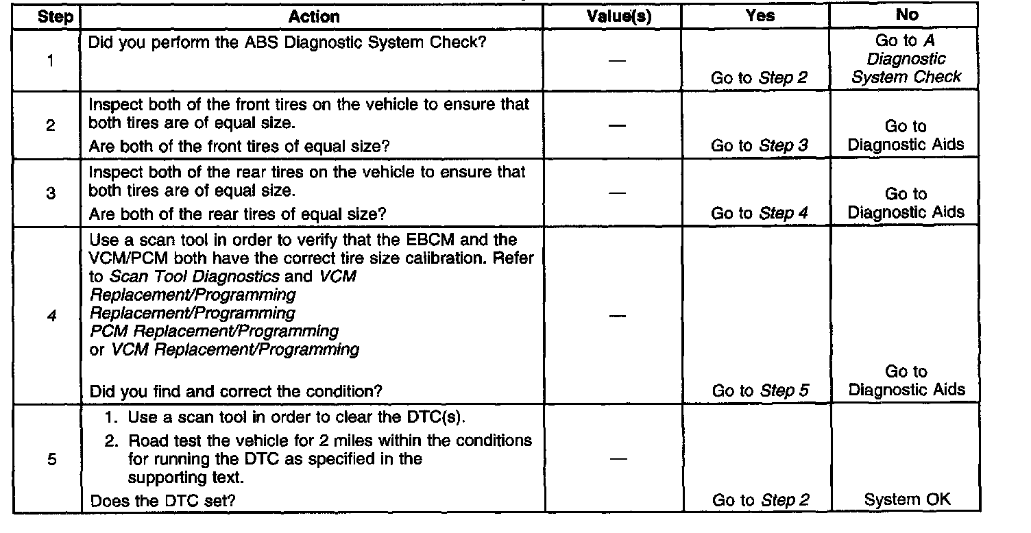 4. If the front tires are not the same size as the rear tires, the EBCM calibration must match the FRONT tire size and the VCM/PCM calibration must match the REAR tire size.