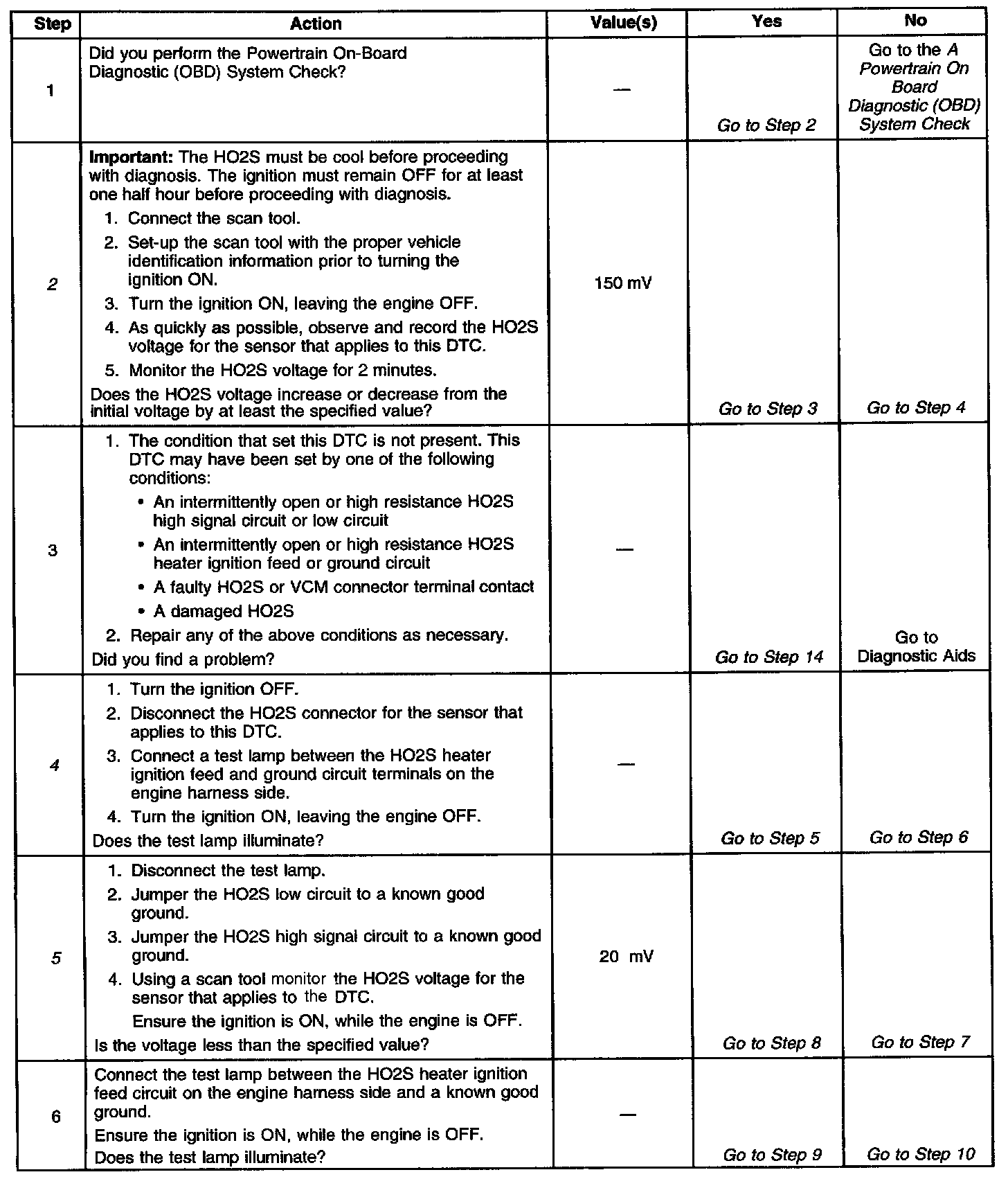 ^ An open or a short to voltage on either the HO2S signal or HO2S low circuits