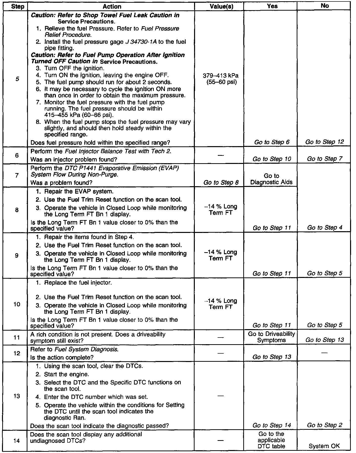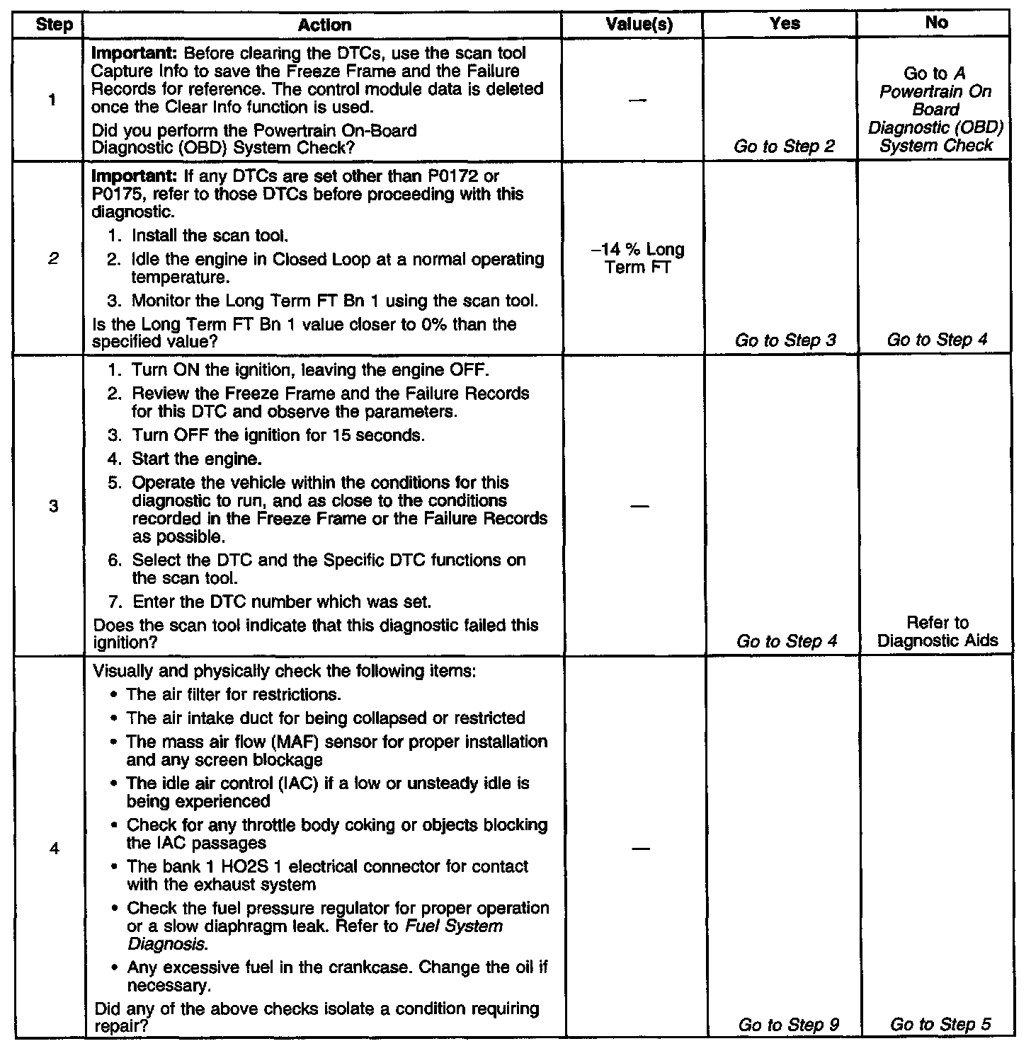 If using the diagnostic tables does not isolate the problem, try monitoring the LT fuel trim and fuel trim cell while operating the vehicle under various loads. This may isolate the condition which caused the setting of the current DTC.