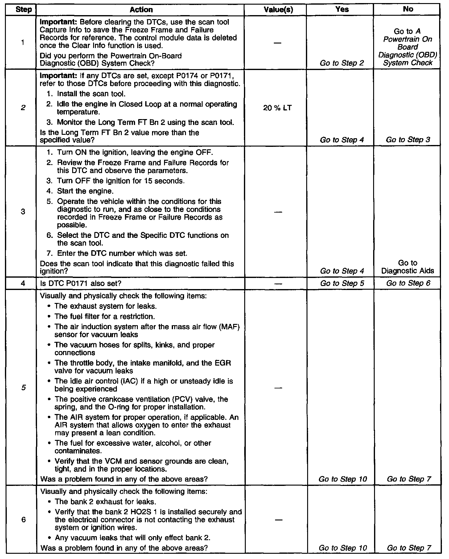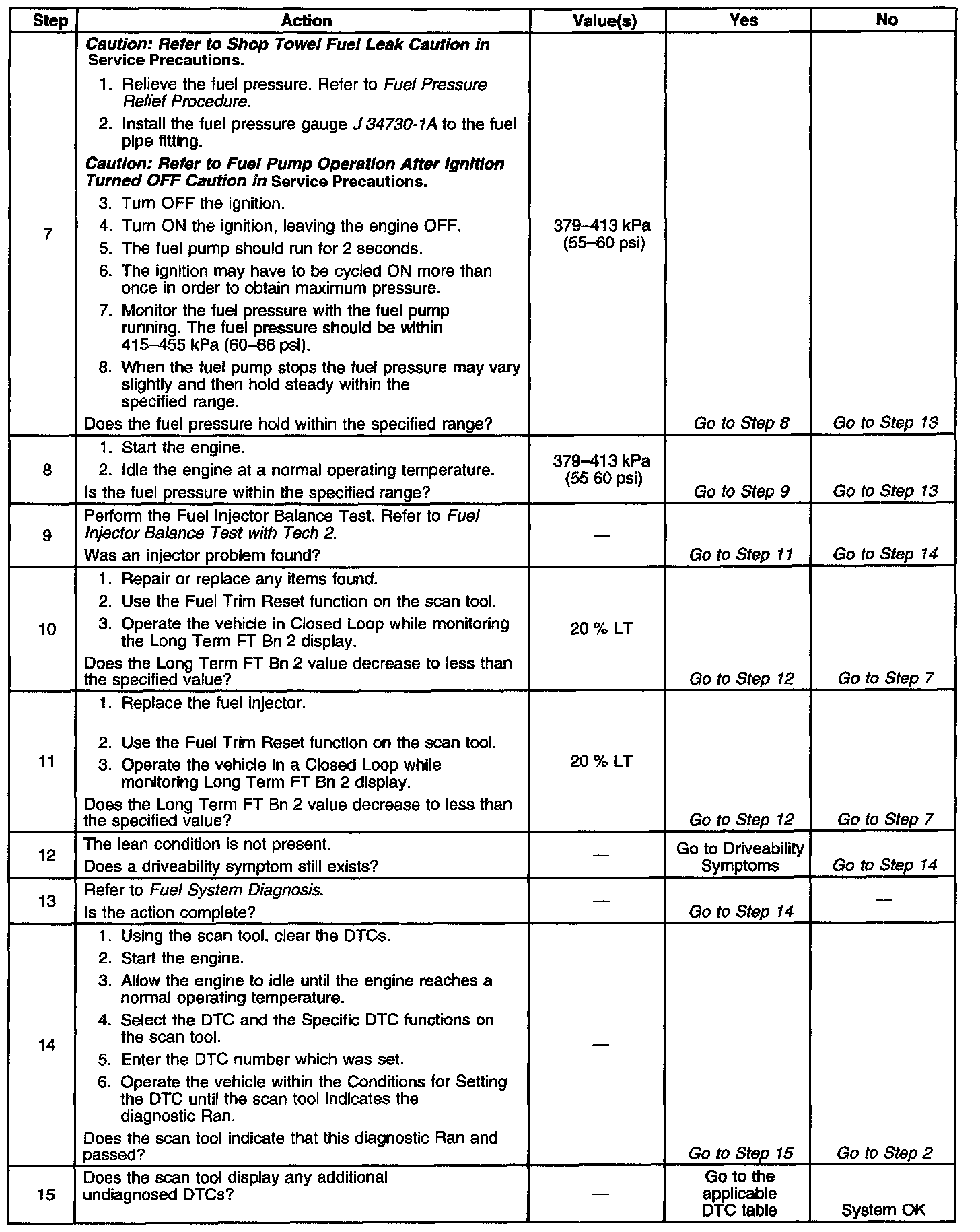 If using the diagnostic tables does not isolate the problem, try monitoring the LT fuel trim and fuel trim cell while operating the vehicle under various loads. This may isolate the condition which caused the setting of the current DTC.