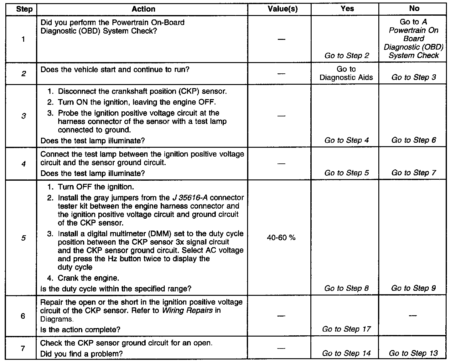 3. This step checks the ignition positive voltage circuit to the crankshaft position sensor.
