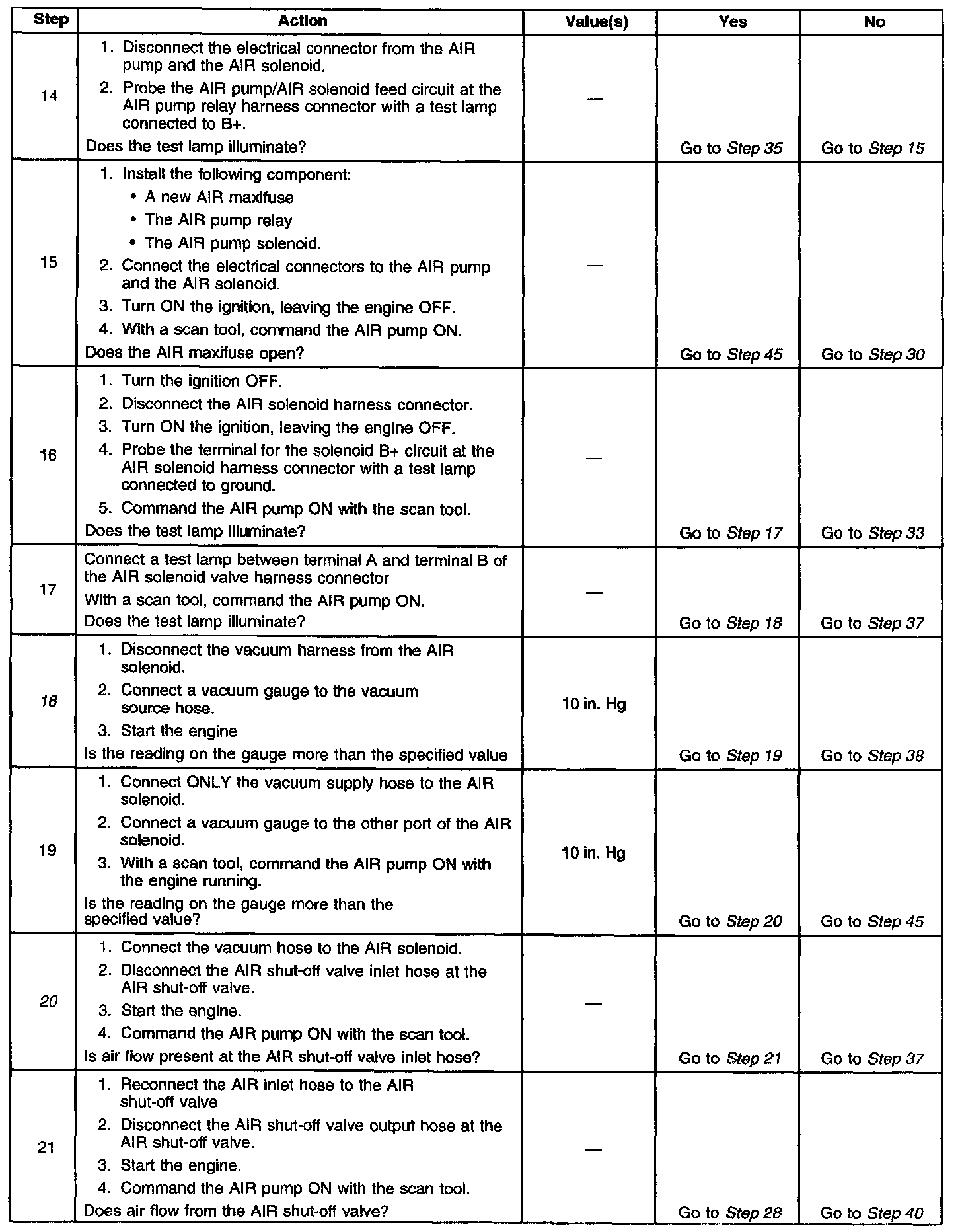 20. This step will determine if the AIR pump is capable of producing airflow.