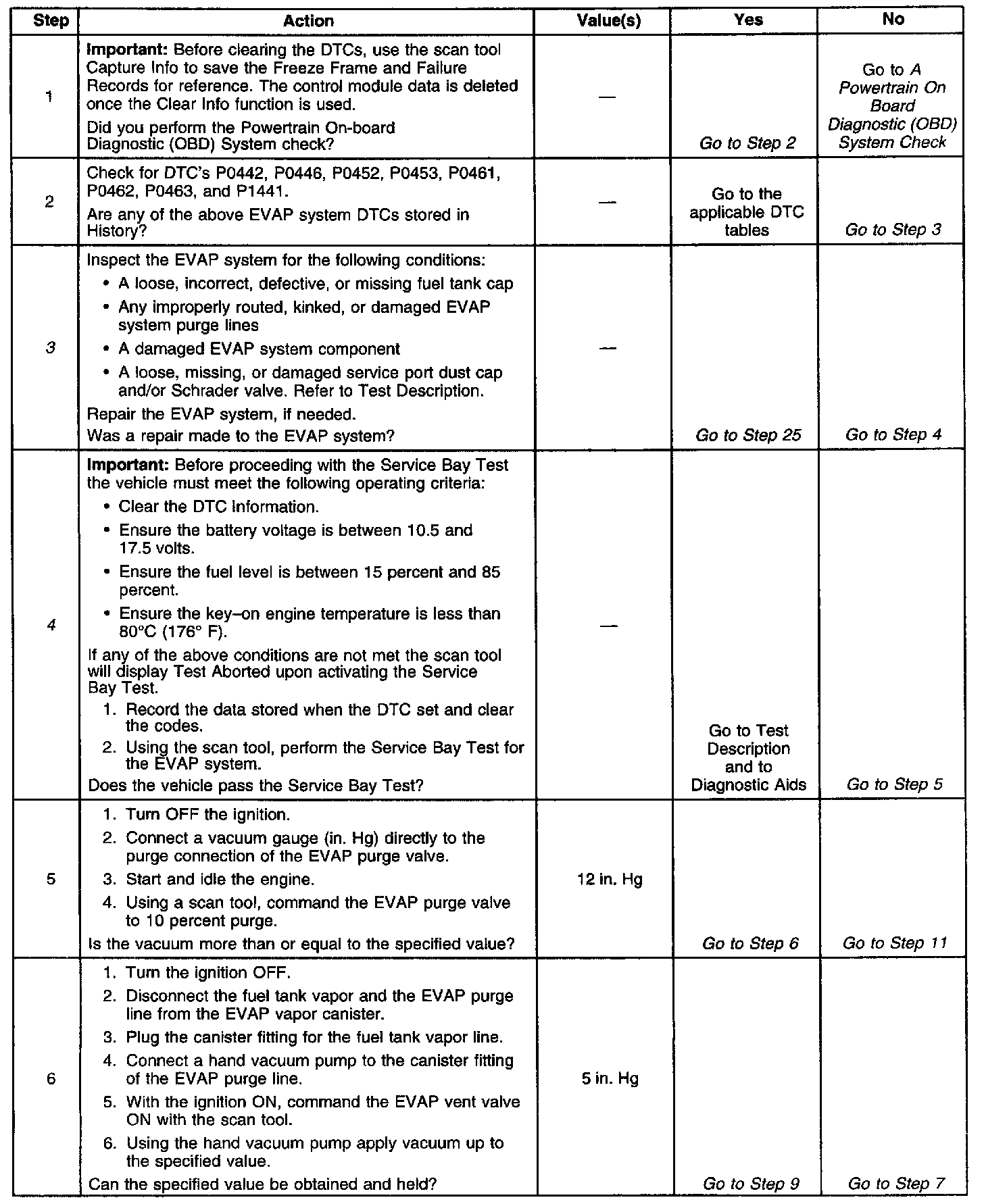 IMPORTANT: An accurate indication of the fuel level is required for the VCM to properly pass or fail this DTC. Always diagnose fuel level sensor DTCs before performing this DTCs diagnostic table. Always check for fuel level sensor DTCs stored in history.