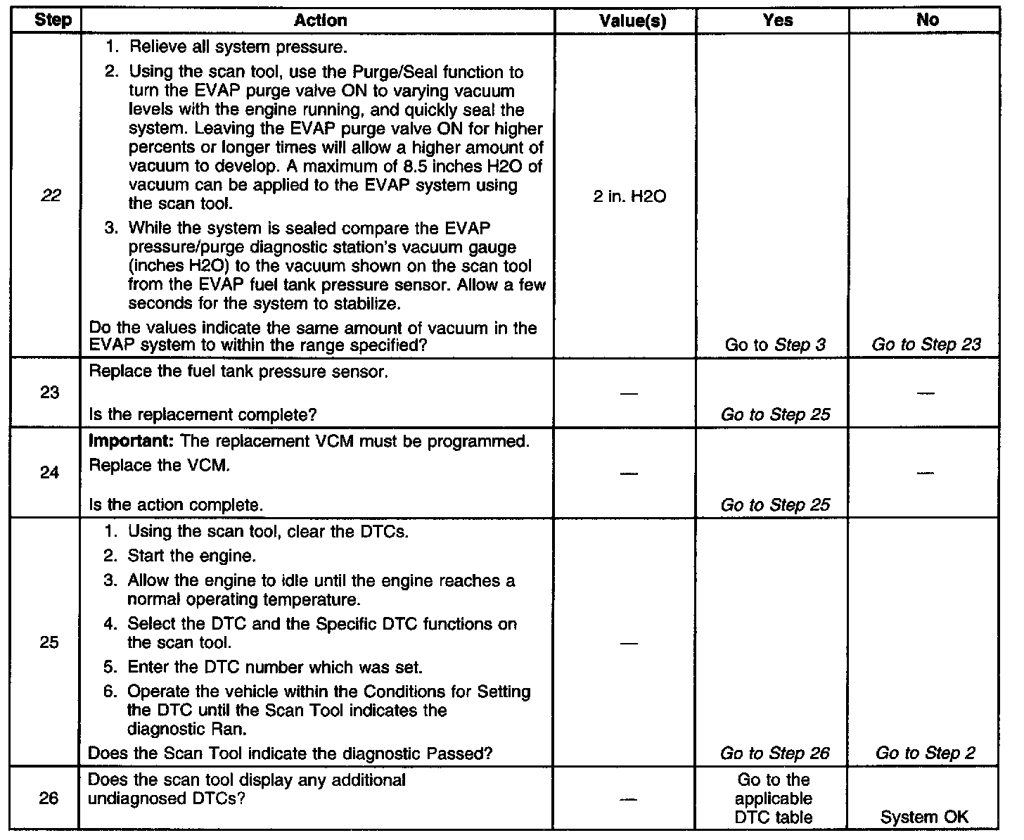 22. An EVAP pressure sensor that does not correctly respond to vacuum will cause this DTC to set.