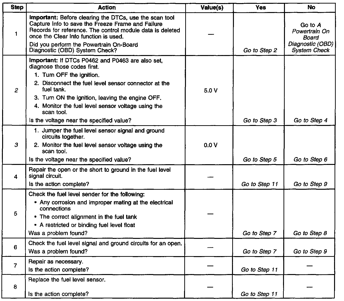 3. This step determines if the fuel level sensor signal and ground circuits are OK.