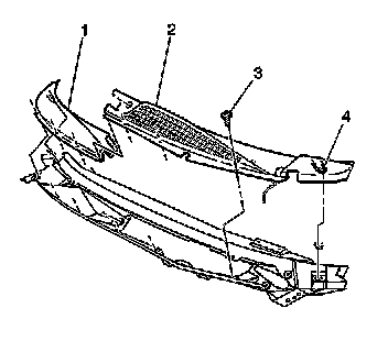 2. Align the retainers (4) in the body with the tabs on the grille panel (1, 2). Press the retainers into place.