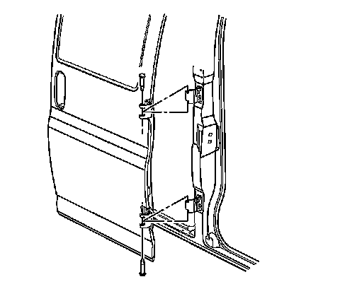 2. Remove the hinged side window or the stationary side window. Refer to Hinged Body Side Window Replacement () or Body Side Stationary Window Replacement () in Stationary Windows.
