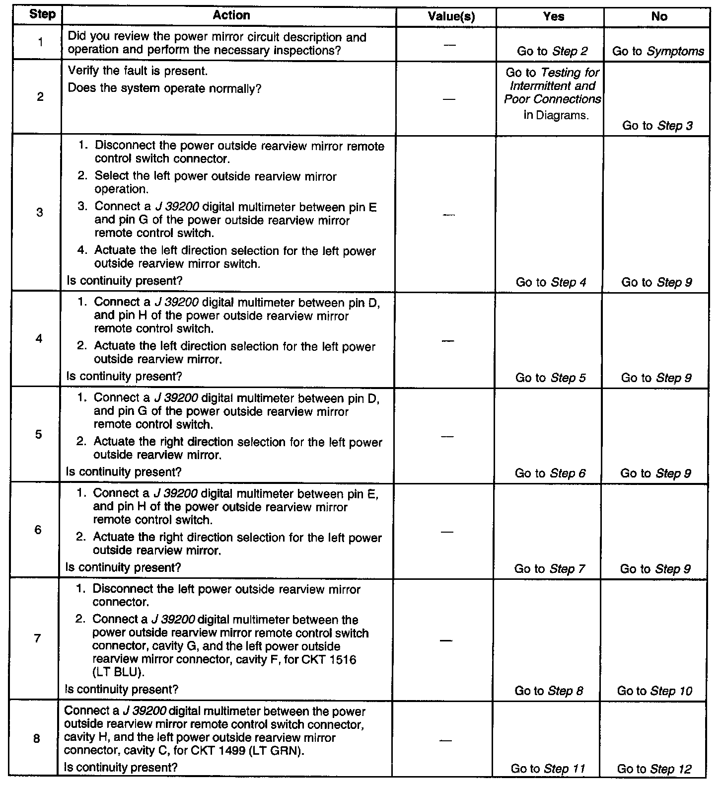 Power Mirrors - Inoperative In Left/Right Direction - LH