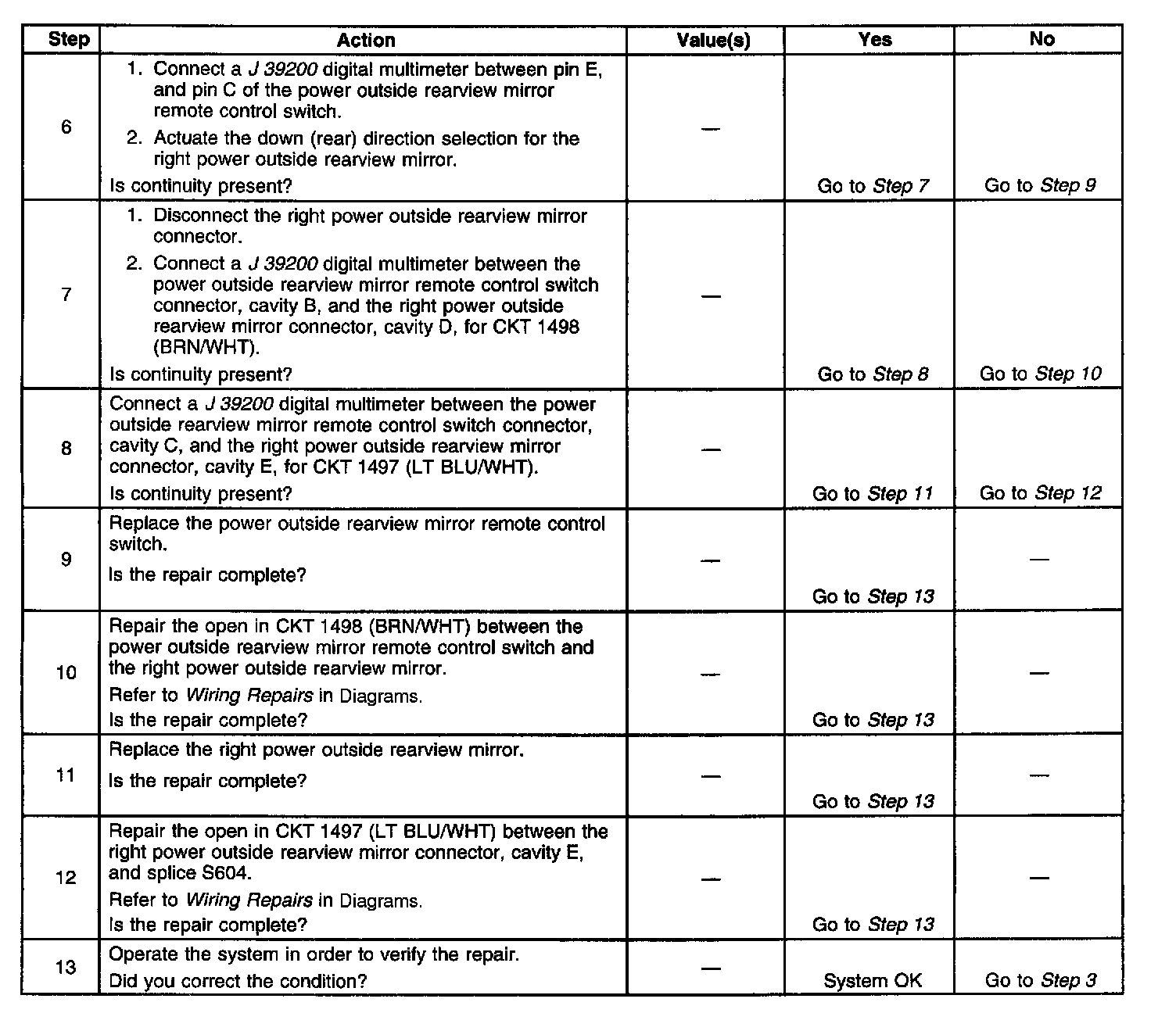 Power Mirrors - Inoperative In Up/Down Direction - RH