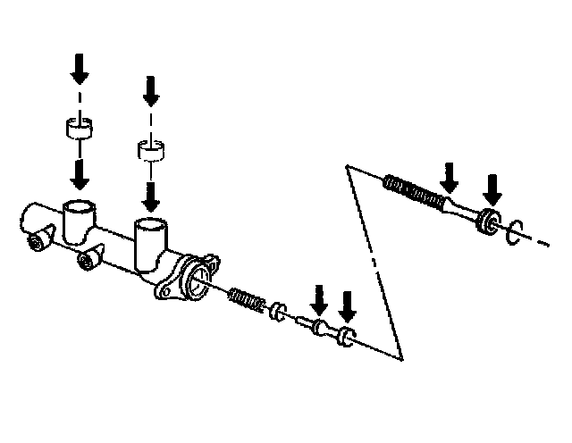 1. Lubricate the grommets, seals, and the cylinder bore with clean DOT 3 motor vehicle brake fluid.