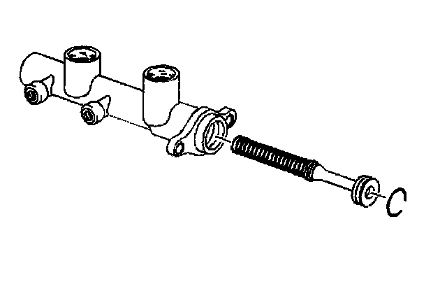 8. Remove the secondary piston from the master cylinder body. Plug the rear port. Apply a small amount of air pressure to the front port.