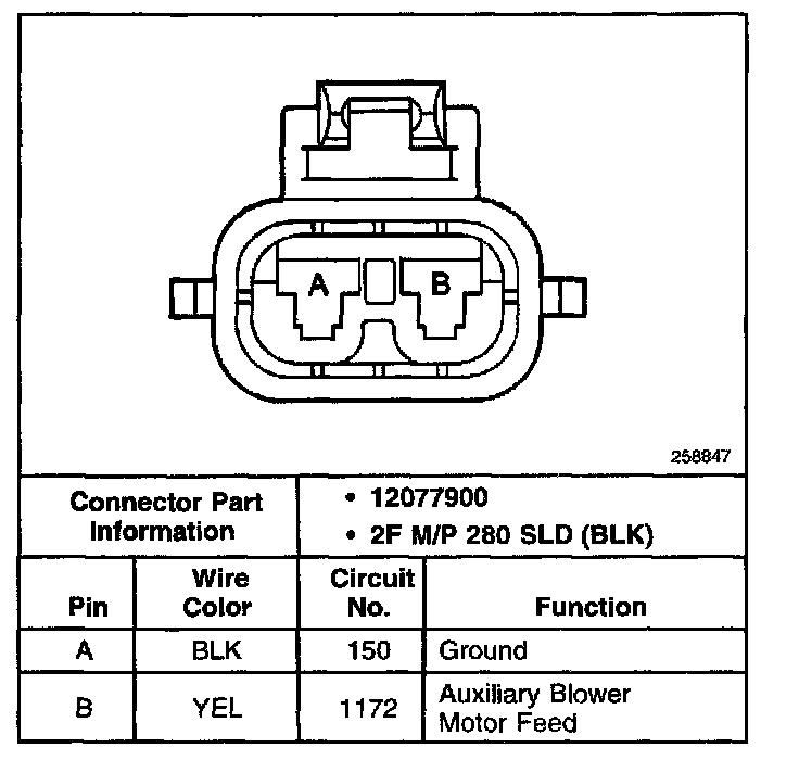 Auxiliary Blower Motor Connector: