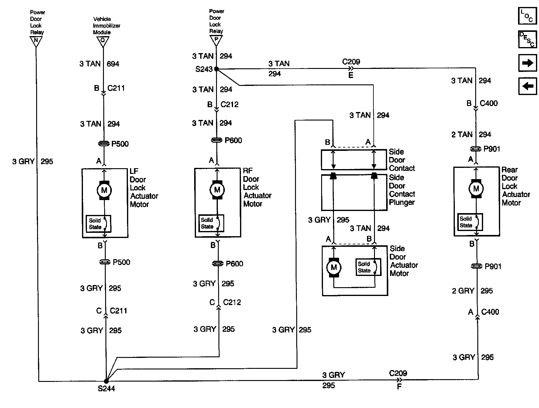 Theft Deterrent System Schematics (Export): Dr Lk Actuator, Side Door Contacts: