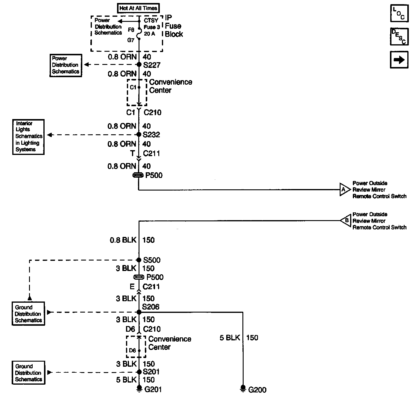 Outside Mirror Schematics: CTSY Fuse, G200, G201: