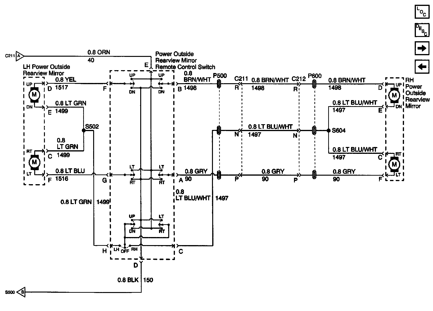 Outside Mirror Schematics: Power Mirror Switch and Motors: