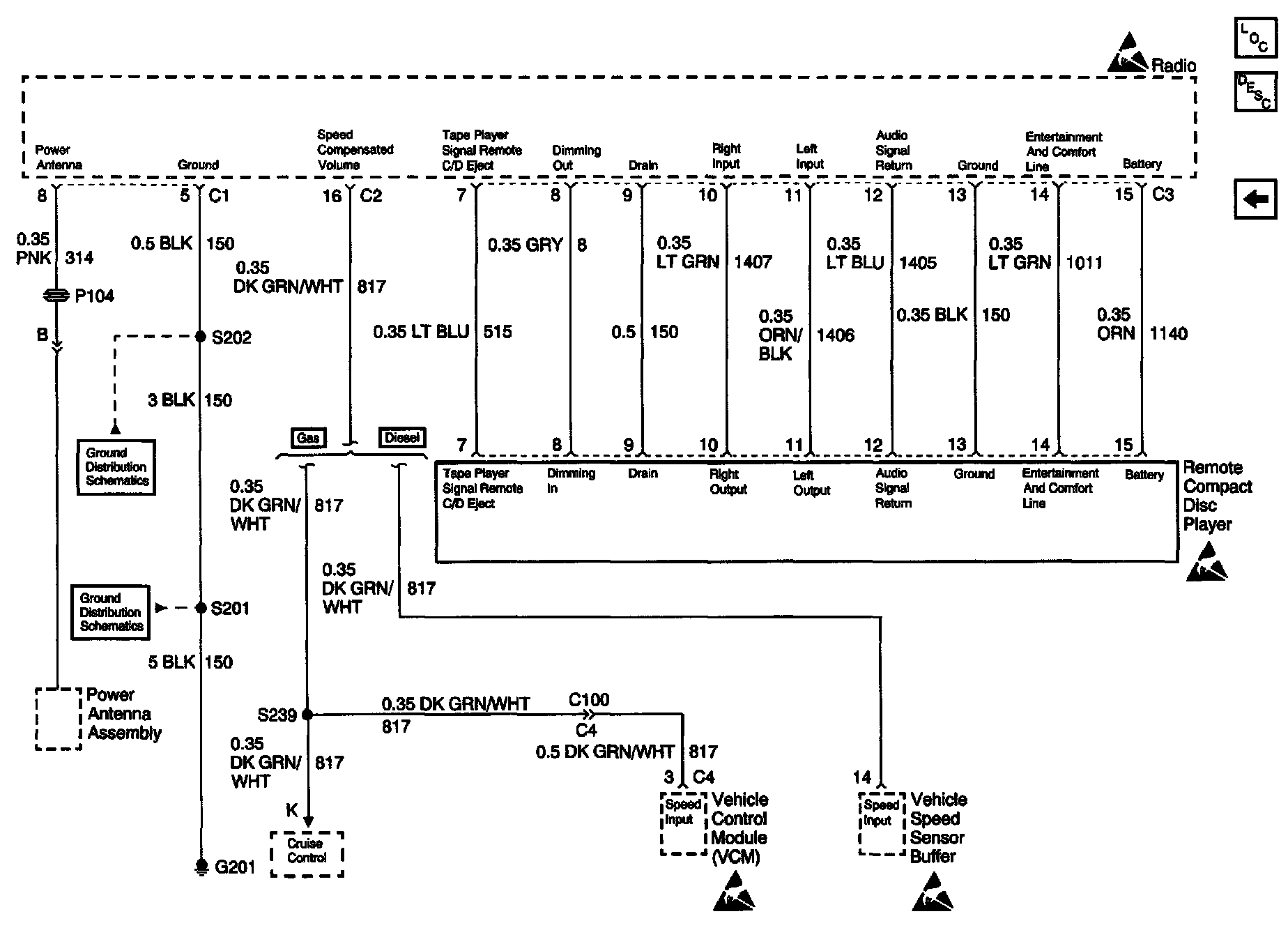 Radio/Audio System Schematics: Power Antenna, Remote Compact Disc Player, And Speed Compensated Volume: