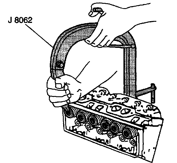 9. Use the J 8062 in order to compress the valve spring.