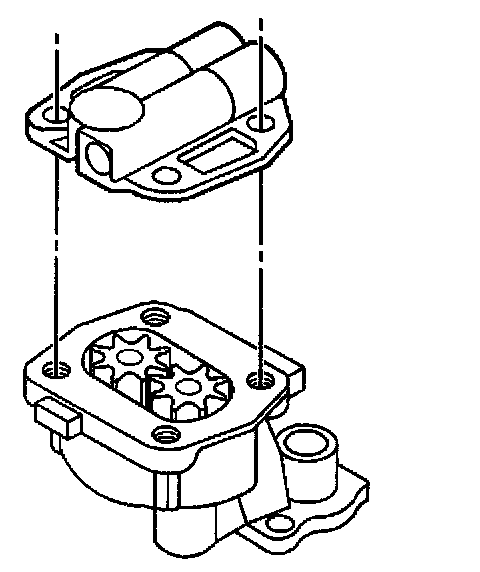 3. Apply clean engine oil GM P/N 12345610 or equivalent to the oil pump drive gear, the oil pump driven gear, and the oil pump body internal surfaces.