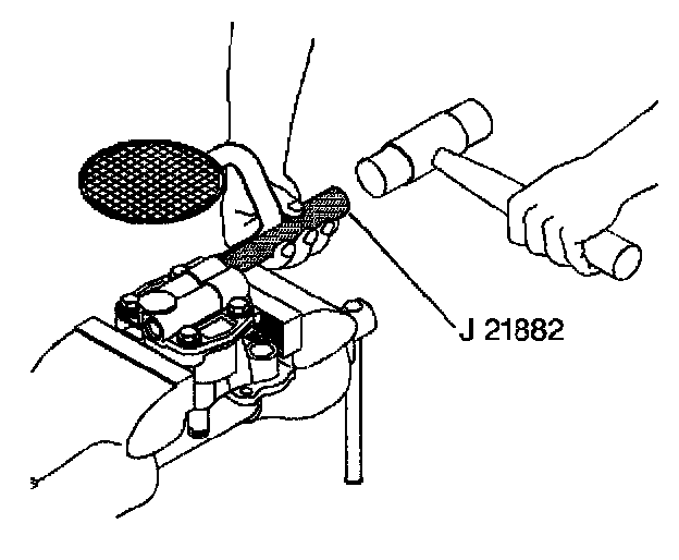 8.4. Use the J 21882 and a soft-faced hammer in order to tap the oil pump screen into the pump body.