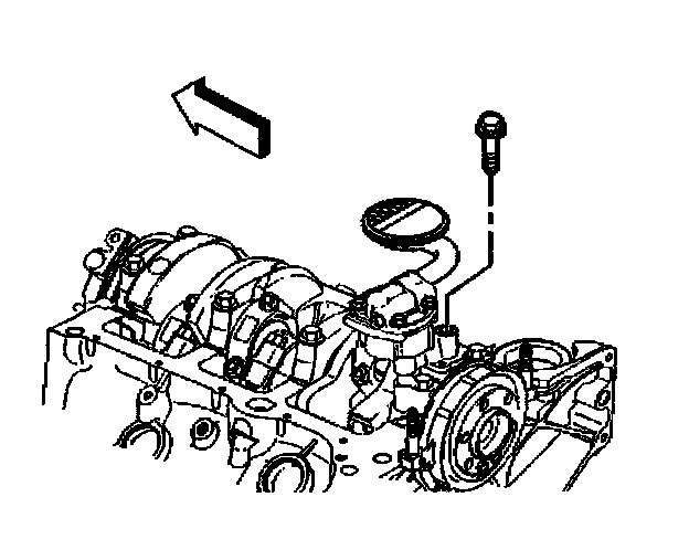 4. Install the oil pump bolt attaching the oil pump to the rear crankshaft bearing cap.