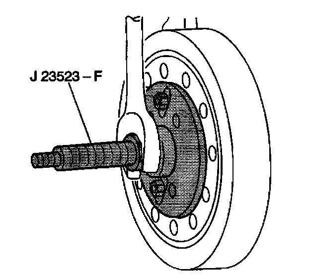 5. Use the J 23523-F in order to press the crankshaft balancer onto the crankshaft.
