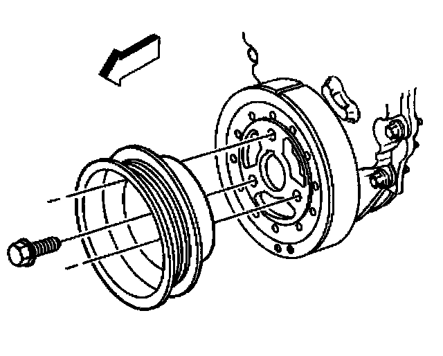 Notice: The inertial weight section of the crankshaft balancer is assembled to the hub with a rubber type material. The correct installation procedures (with the proper tool) must be followed or movement of the inertial weight section of the hub will destroy the tuning of the crankshaft balancer.