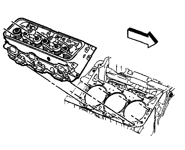 Guide the cylinder head carefully into place over the dowel pins and the cylinder head gasket.