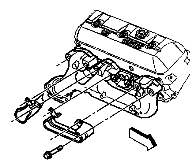 4. If reusing the fasteners, apply threadlock GM P/N 12345493 or equivalent to the threads of the exhaust manifold bolts.