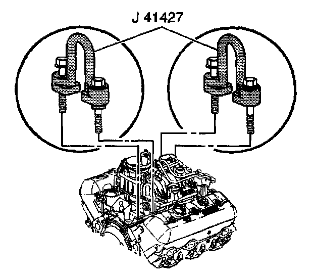 43.5. Install the J 41427 marked LEFT FRONT with the arrow pointing to the front of the engine.