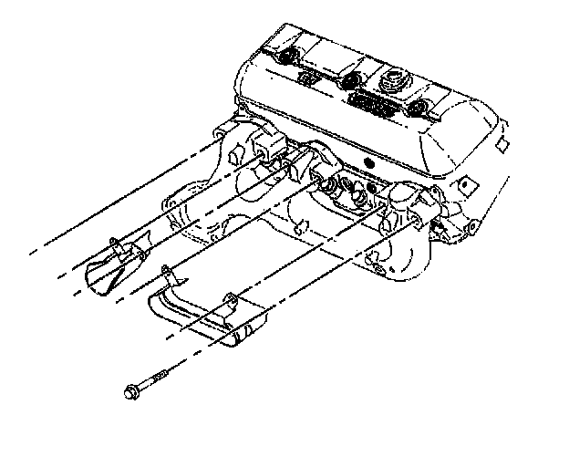 11. Remove the exhaust manifold with the exhaust manifold gaskets and the spark plug wire shields from the engine.