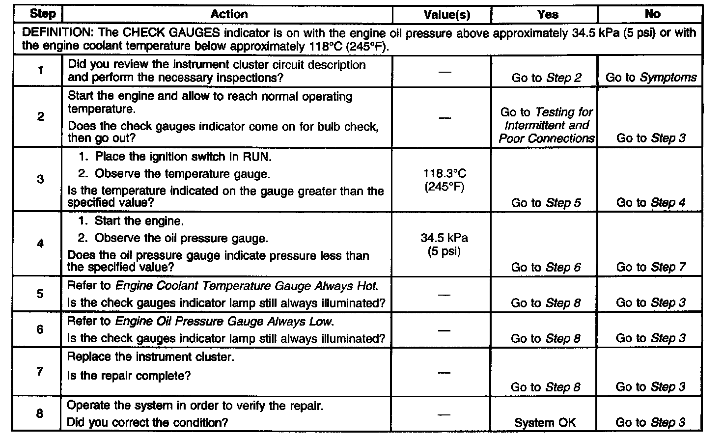 CHECK GAUGES Indicator Always On