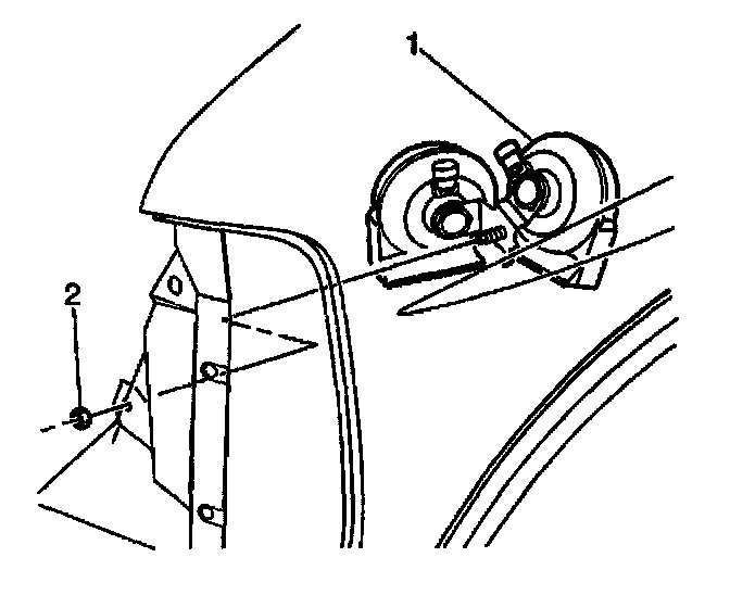 5. Install the nut (2) in order to retain the horn mounting bracket (1) to the vehicle.