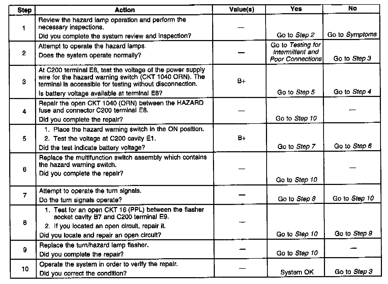 Hazard Lamps Inoperative
