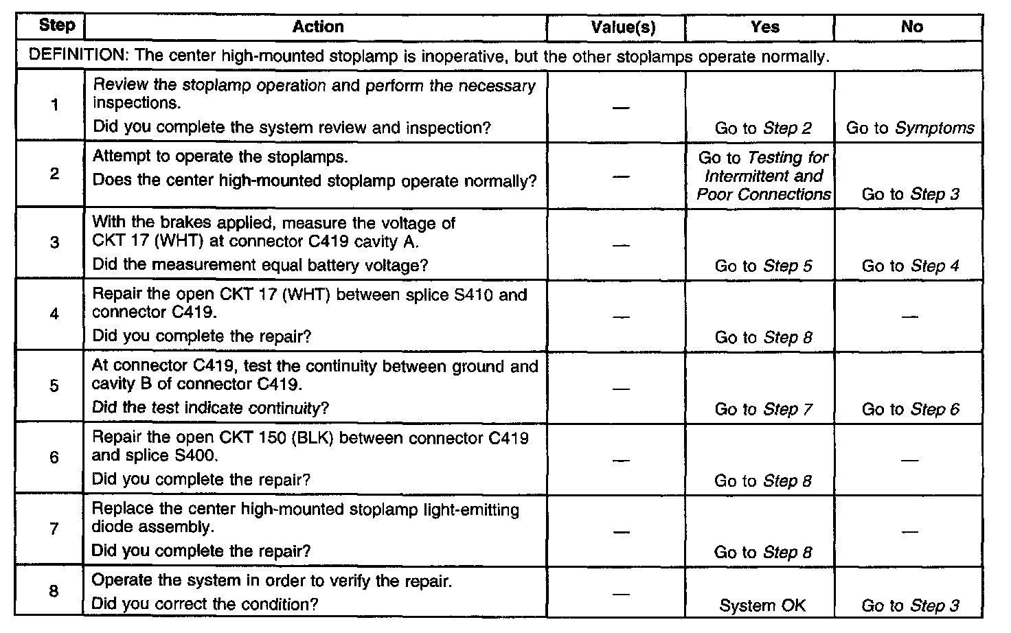 Stop Lamps Inoperative - Center High Mounted